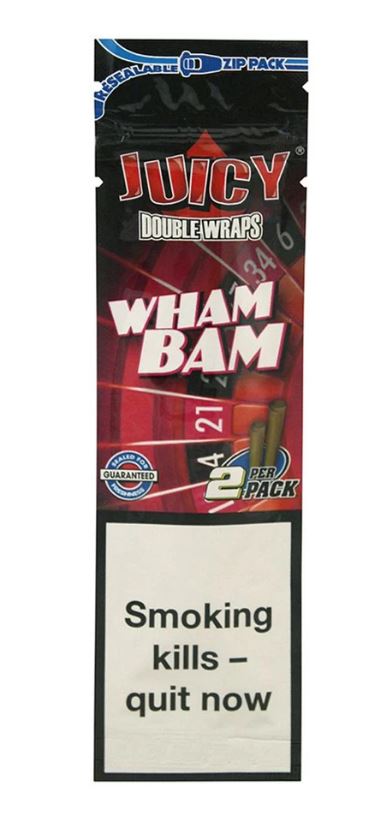 Блант Juicy Jay "Wham Bam" - особенный тип обёрточной бумаги для курильщиков. Бумага блантов изготавливается из особой бумаги. Материалом для которой послужило конопляное полотно, или табачный лист который ароматизируют очень интересным методом. Технология заключается в трёх-кратном процессе ароматизации. Бумагу вымачивают с ароматизатором и держат его около недели в ванне. Данную процедуру проводят аж 3 раза в связи с чем бланты от Juicy Jay не выветриваются, даже при длительном хранении. В данном случае базой для ароматизатора стал микс из малины - для любителей вкуса малиновой ягоды и лёгкой цитрусовой кислинки. Блант очень сочно передаёт вкус этого микса, и оставляет приятный привкус на губах. Просто, но в тоже время очень вкусно.