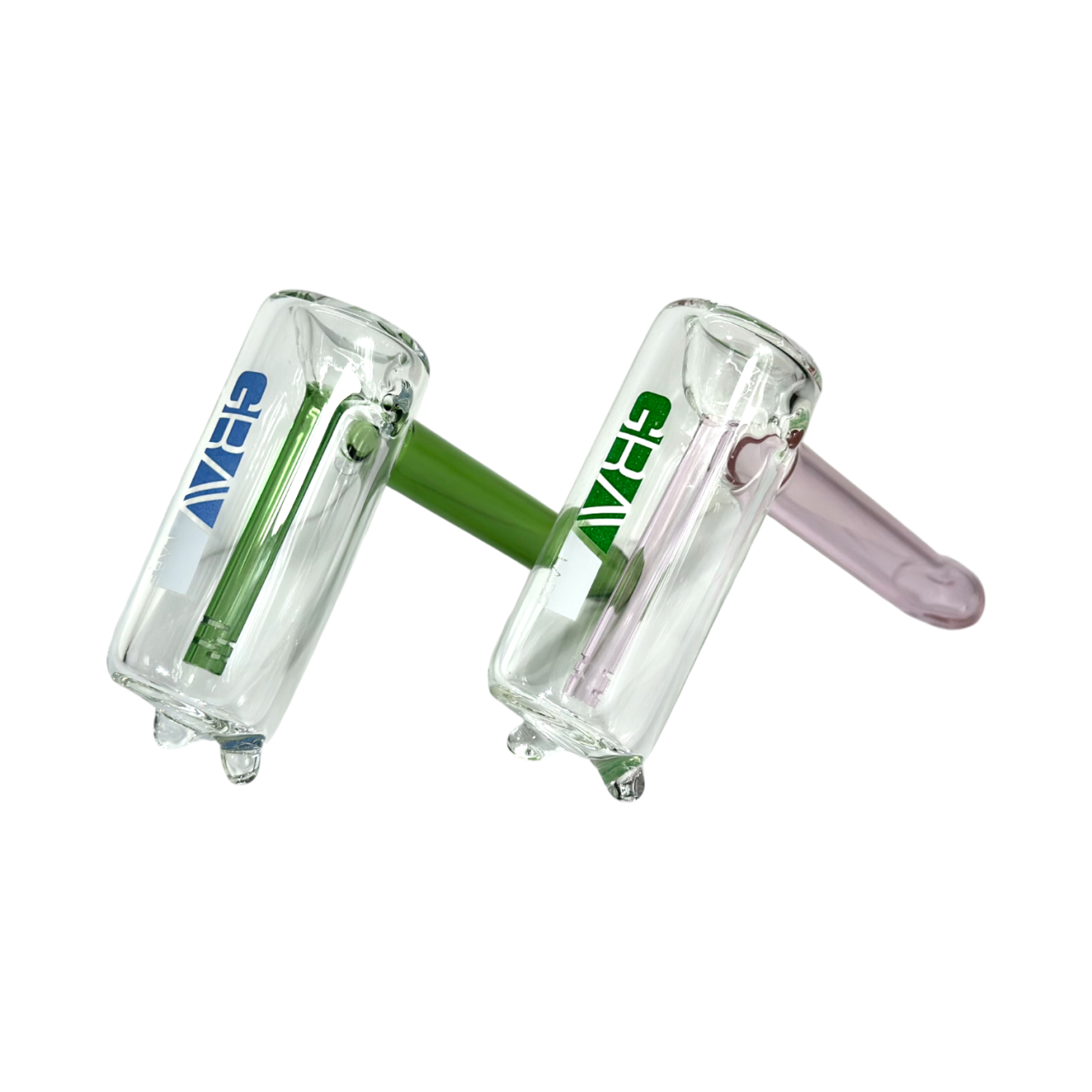 Баблер GRAV Hammer оснащен встроенной чашей и турбо отверстием (Kick-hole) , небольшим диффузором с 4 отверстиями для измельчения дыма.