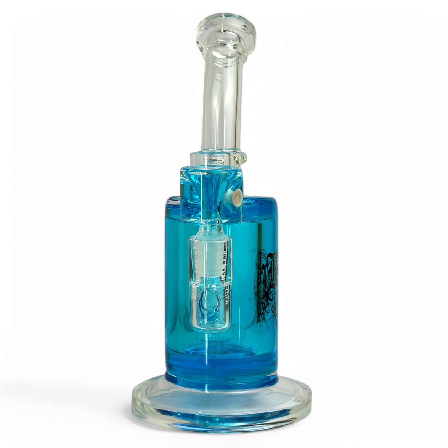 Курительный девайс имеет двойные стенки, образовавшееся пространство заполнено жидкостью. Жидкость в данном случае исполняет роль хладагента. Если перед дымным забегом ненадолго поместить бонг в холодильник, то на выходе вас будет ждать прохладный дым. Также улучшению качества дыма способствуют ice-шипы и встроенный перколятор типа «Drum Percolator». При этом перколятор не только фильтрует дым, но и в тандеме с цветной жидкостью обеспечивает крутой визуальный эффект. За пузырьками внутри бонга очень интересно наблюдать.