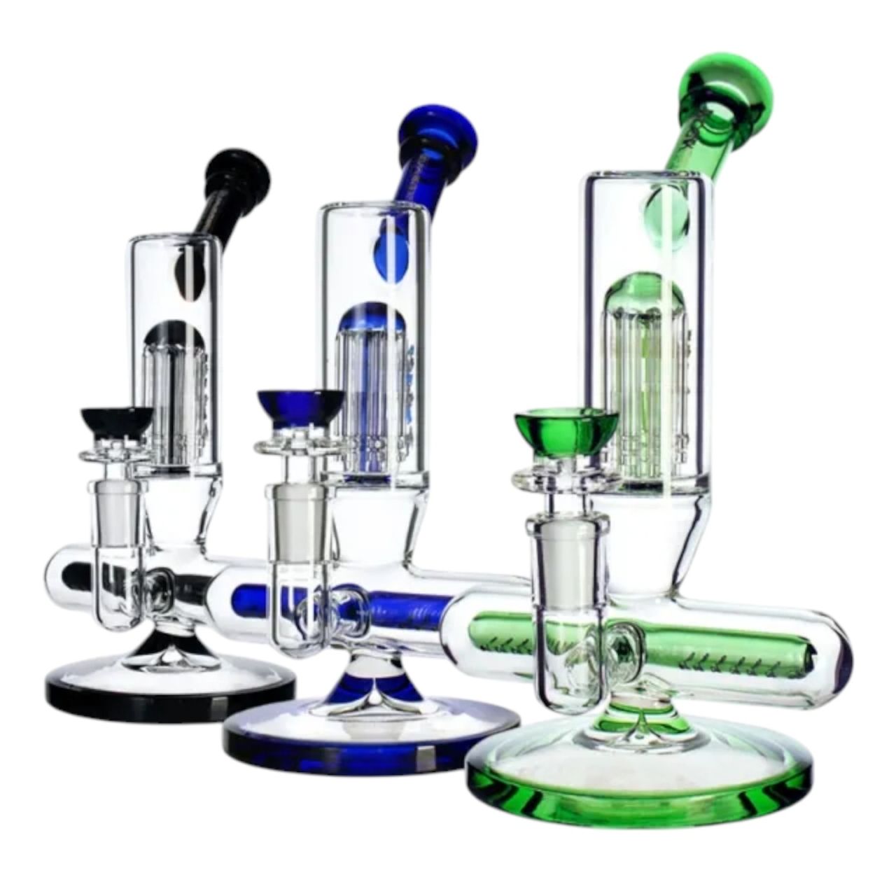 Толстое боросиликатное стекло делает модель надёжной и долговечной, а цветные акценты на мундштуке, шлифе и основании придают изделию стильный, современный вид.