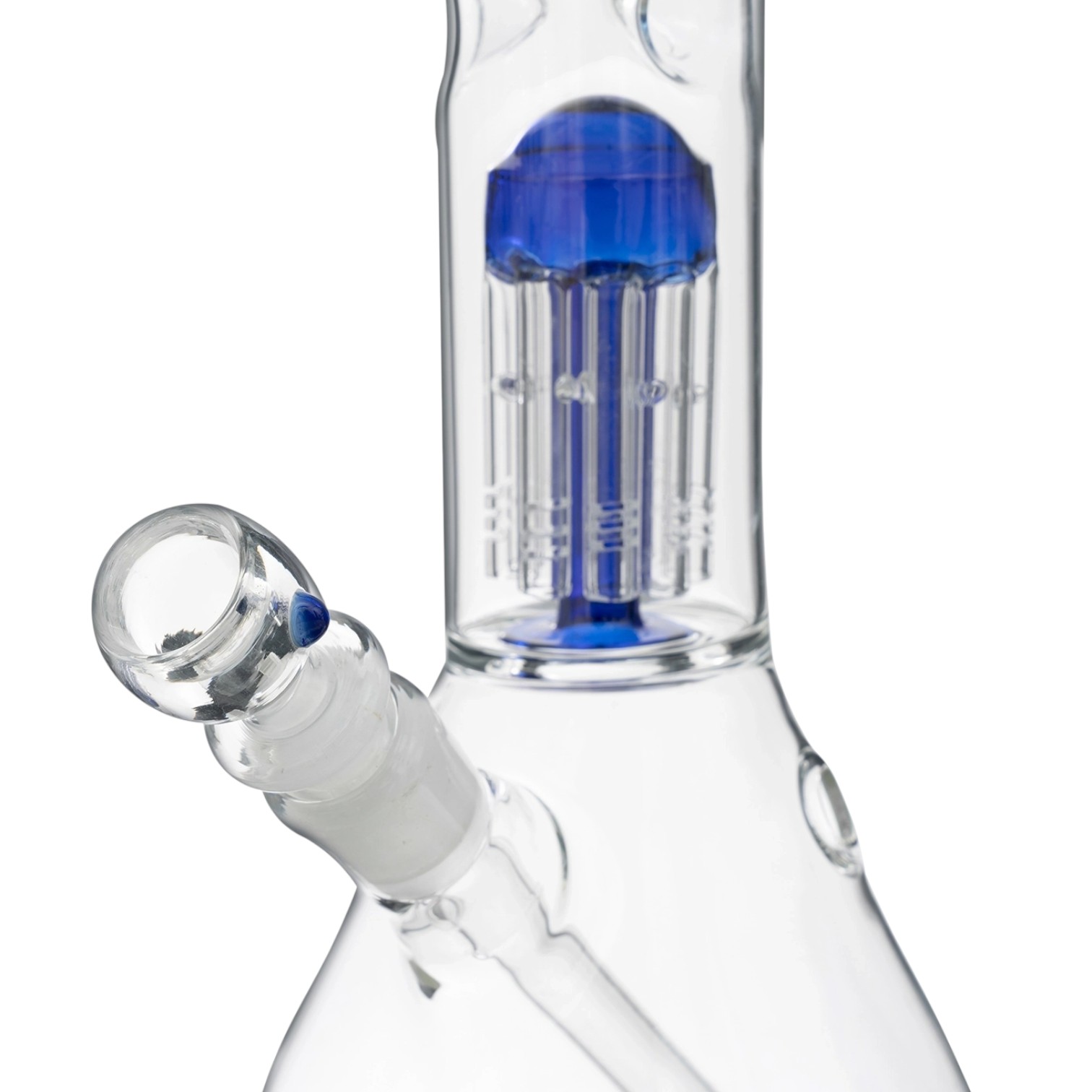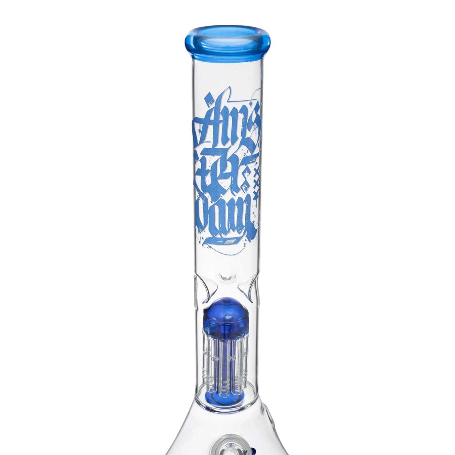 Высокий бонг Amsterdam - 8Tree Blue выполнен из боросиликатного стекла с толщиной стенки 3 миллиметра. Девайс имеет корпус с синим принтом, а камера 8-ми рукавного перколятора прозрачная. Благодаря этому очистка хорошо видна и за ней можно наблюдать прямо в процессе курения.
