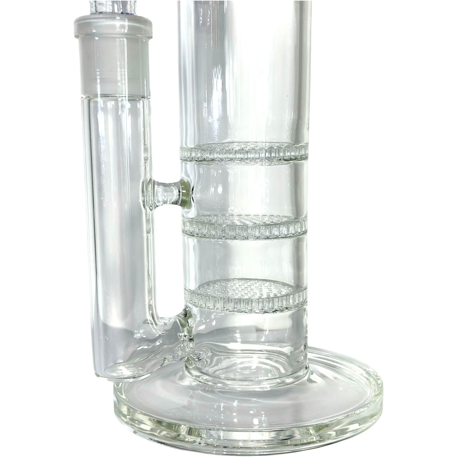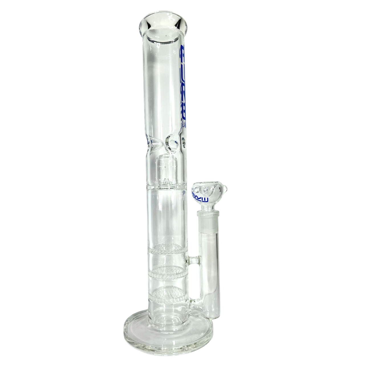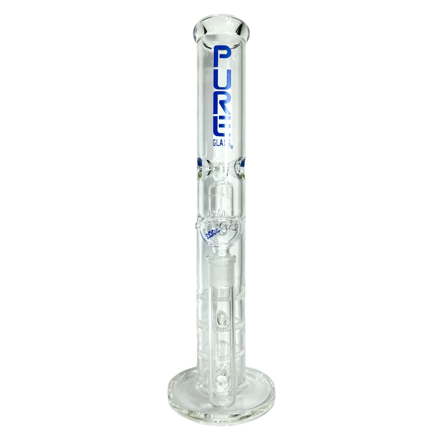 Стеклянный бонг Pure 3 Honey 42 cm займет особенное место в вашей коллекции. Три диска Honeycomb измельчат дым в пузырьки, что сделает курение более мягким и приятным, а специальный купол защитит от брызг.