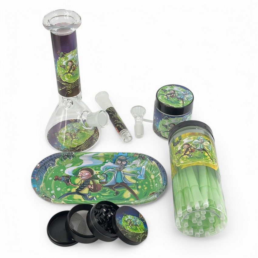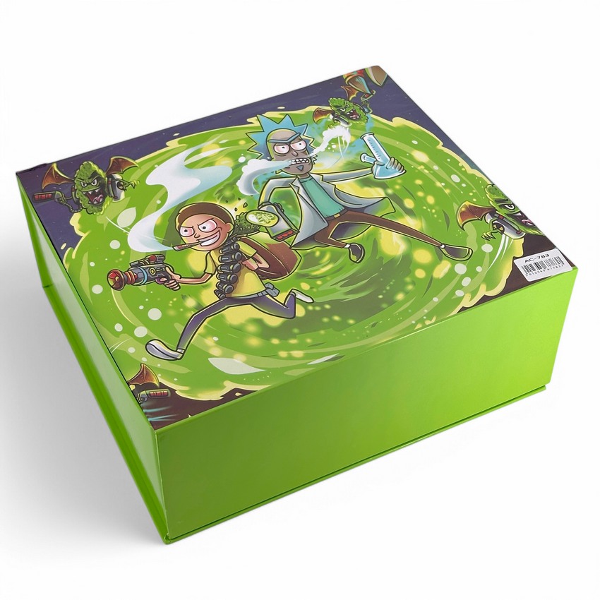 Cosmic Portal Deluxe Set — это полноценный подарочный набор для ценителей стильных аксессуаров. В центре набора — крепкий стеклянный бонг с насыщенной графикой в динамичном фантастическом стиле. На принтах изображены персонажи, попавшие в вихрь межпространственных приключений — ярко, детально и очень атмосферно.