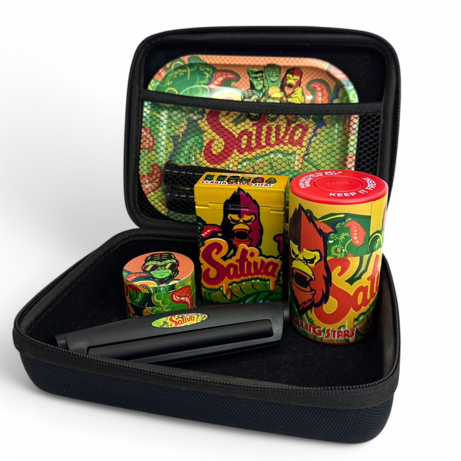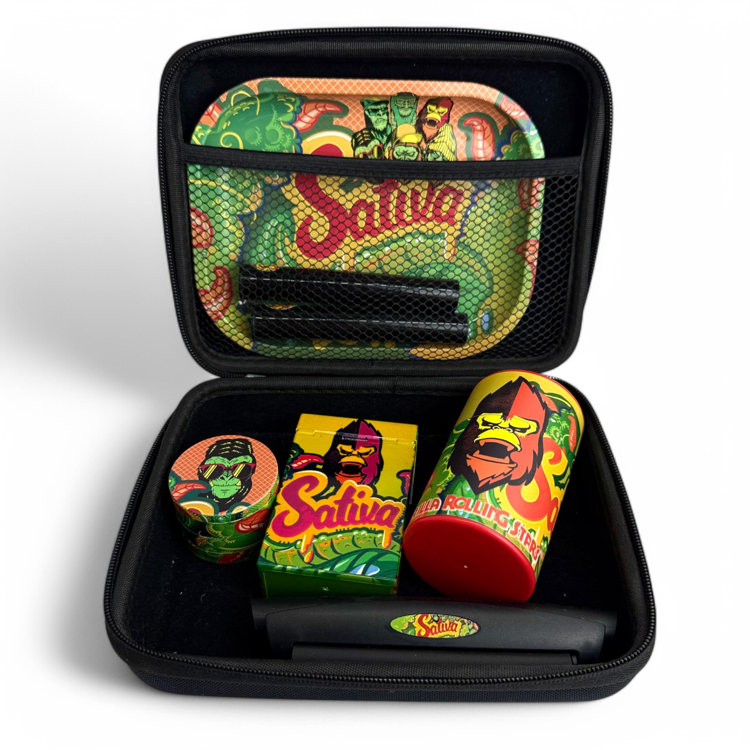 Небольшой но достаточно функциональный набор от известного бренда. В набор входит: трей, гриндер, контейнер для джоинта, гермитичный контейнер для хранения табака и машинка для самокруток и прочие акссесуары.