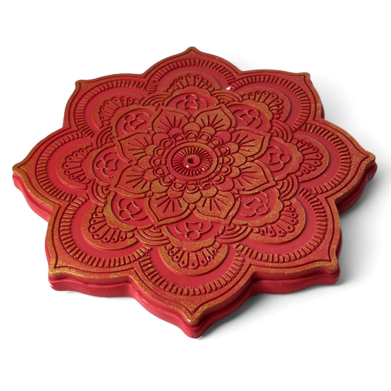 Универсальная подставка, подходящая для благовоний, которые требуют зажжения — таких как Пало Санто, шалфей и другие. Форма мандалы придаёт изделию декоративную выразительность, а термостойкий материал обеспечивает безопасность при использовании.