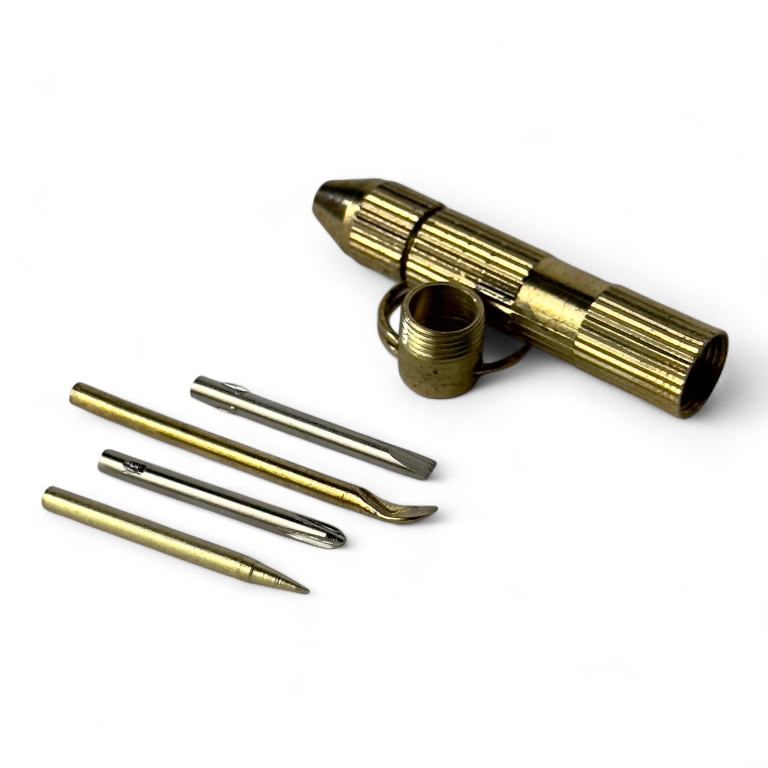 Удобный брелок, очень компактный, имеет насадки под различные нужды, которые прячутся в брелок и при ниобходимости надеваются или меняются.