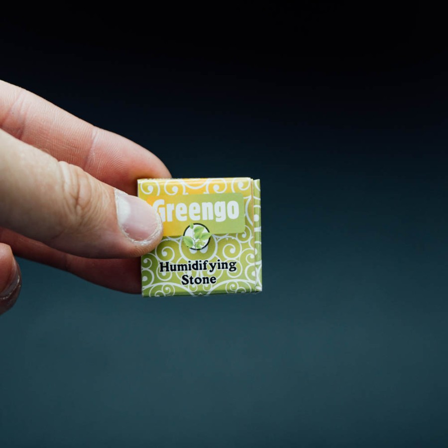 Специальный камень Greengo с пористой структурой для увлажнения табака. Перед началом эксплуатации камень нужно опустить на пять минут в ёмкость с водой, желательно дистиллированной, после чего вытереть камень насухо и поместить камень в банку или кисет с табаком. Камень отдаёт необходимое количество влаги табаку, при этом поверхность камня всегда остаётся сухой, исключая намокание табака.