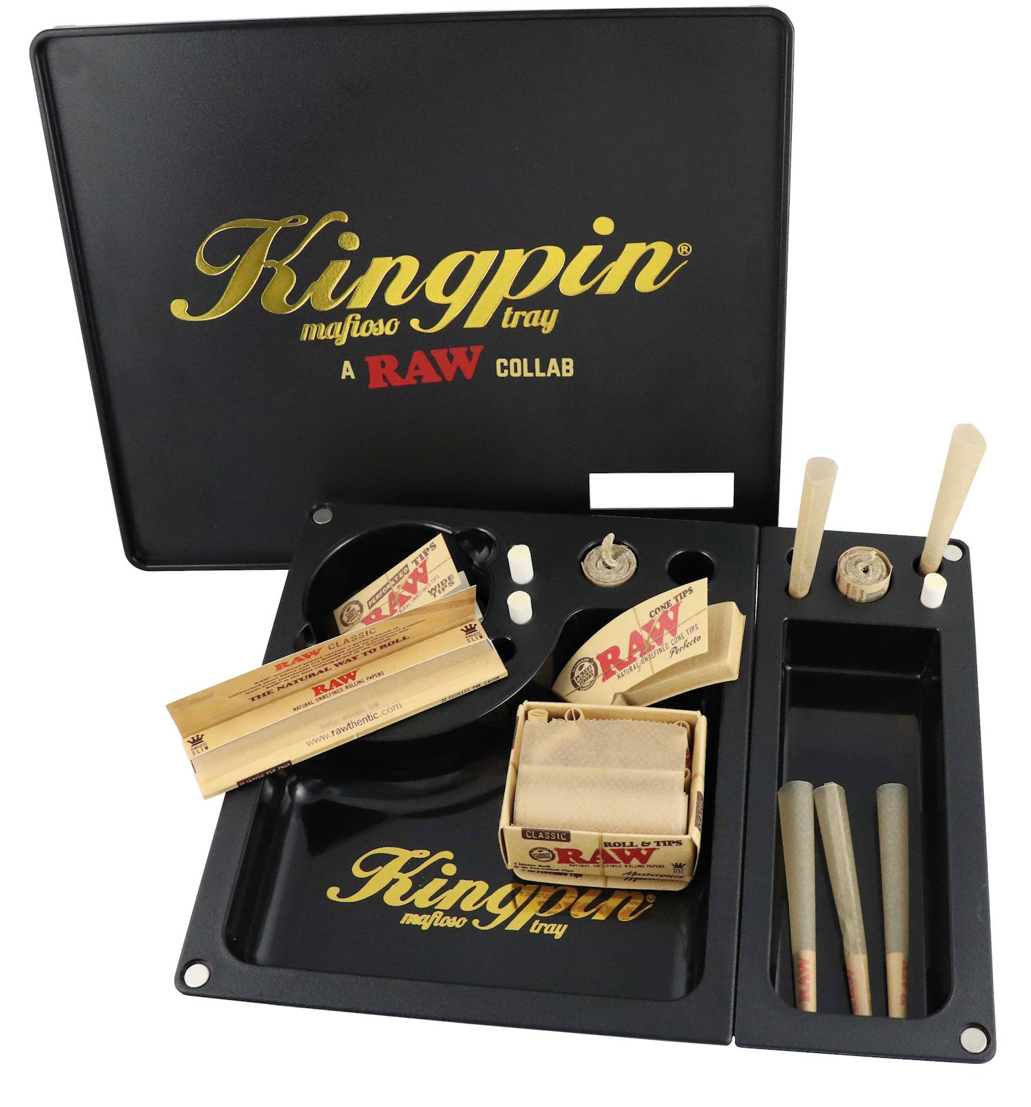 Эта коллаборация двух легендарных брендов — Kingpin и RAW — воплотилась в идеально выверенном трее для настоящих ценителей. Mafioso Tray создан, чтобы всё было под рукой: от конусов и фильтров до зажигалки и прочих мелочей. Стильно, удобно, функционально — то, что нужно для твоего ритуала.