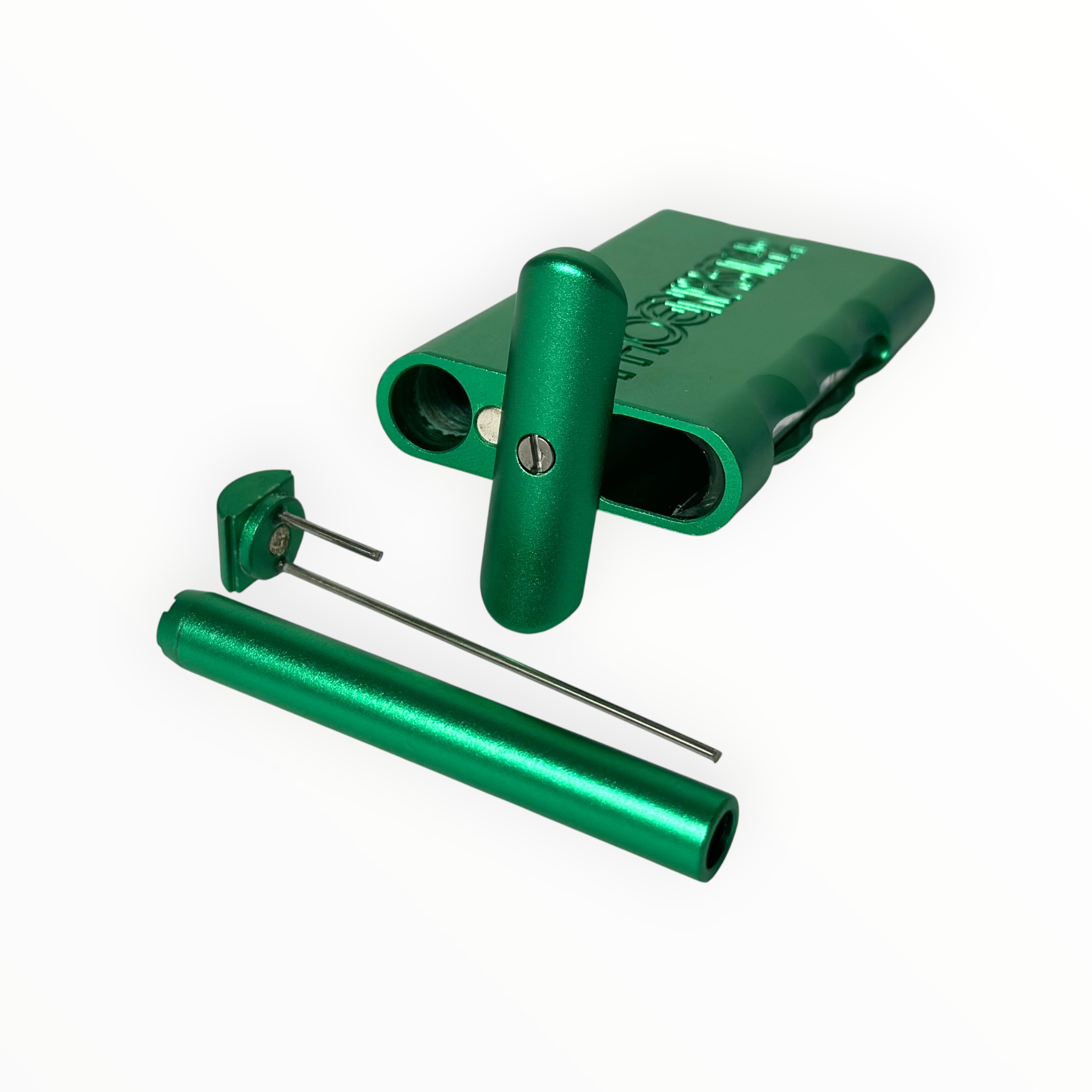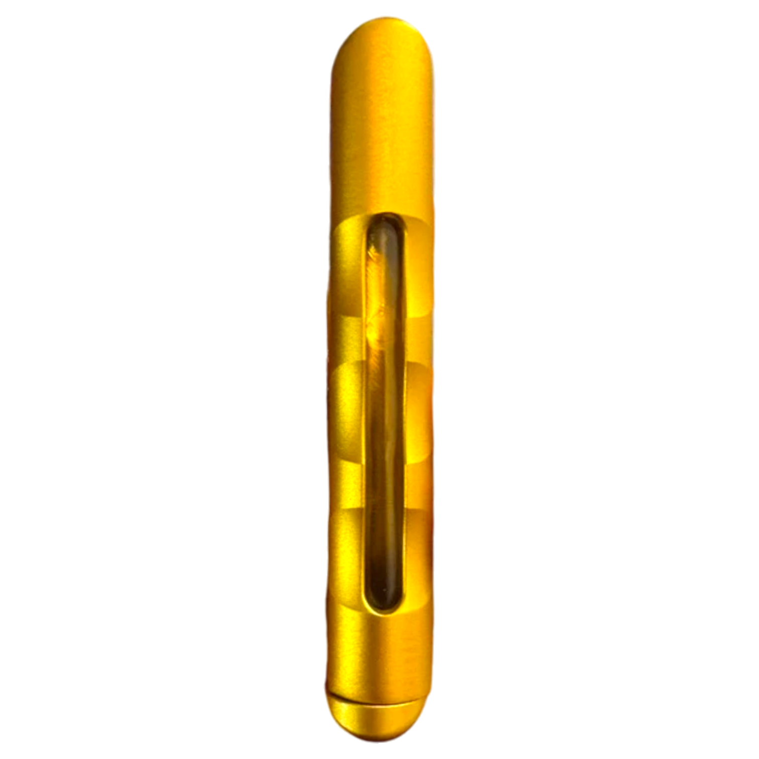 Эта стильная и компактная трубка выполнена в прочном анодированном металле, который обеспечивает премиальный вид и долговечность. Корпус удобно лежит в руке благодаря рельефным выемкам, а плотная крышка помогает сохранять аккуратность и скрытность использования.