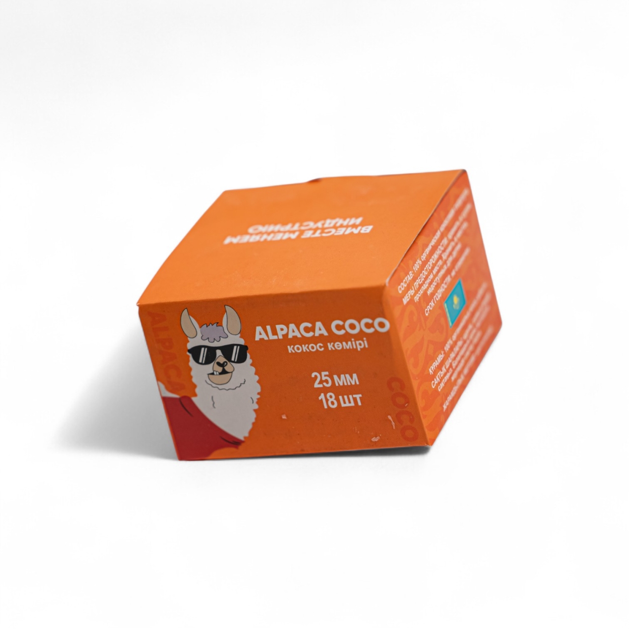 Уголь для кальяна премиум-класса Alpaca (Альпака). В коробке 18 кубиков размером 25 мм. Уголь не имеет посторонних запахов при розжиге и в процессе курения, и не влияет на передачу вкуса.