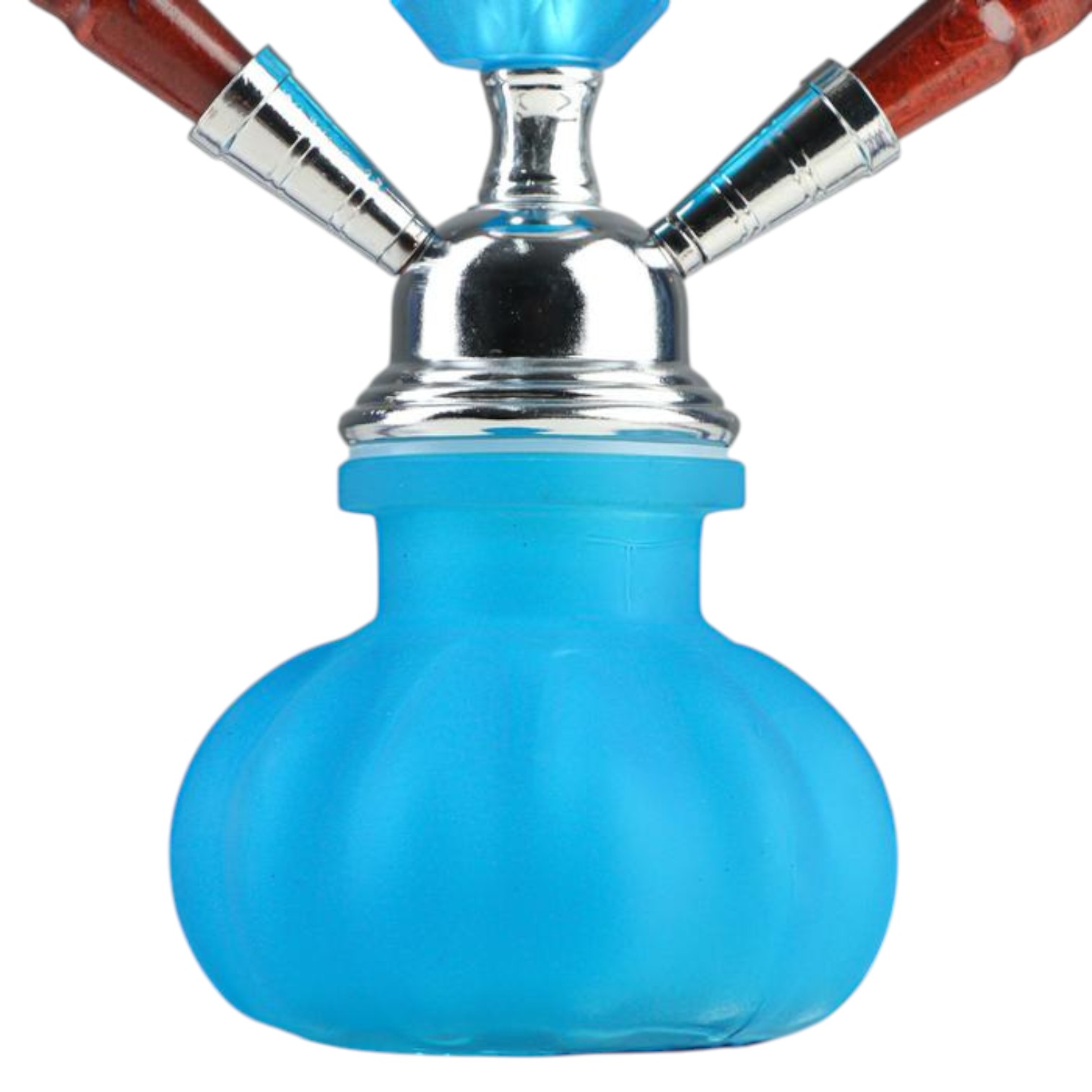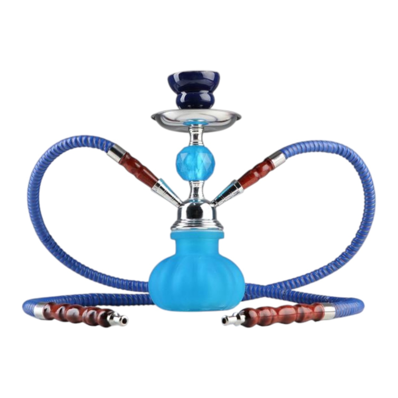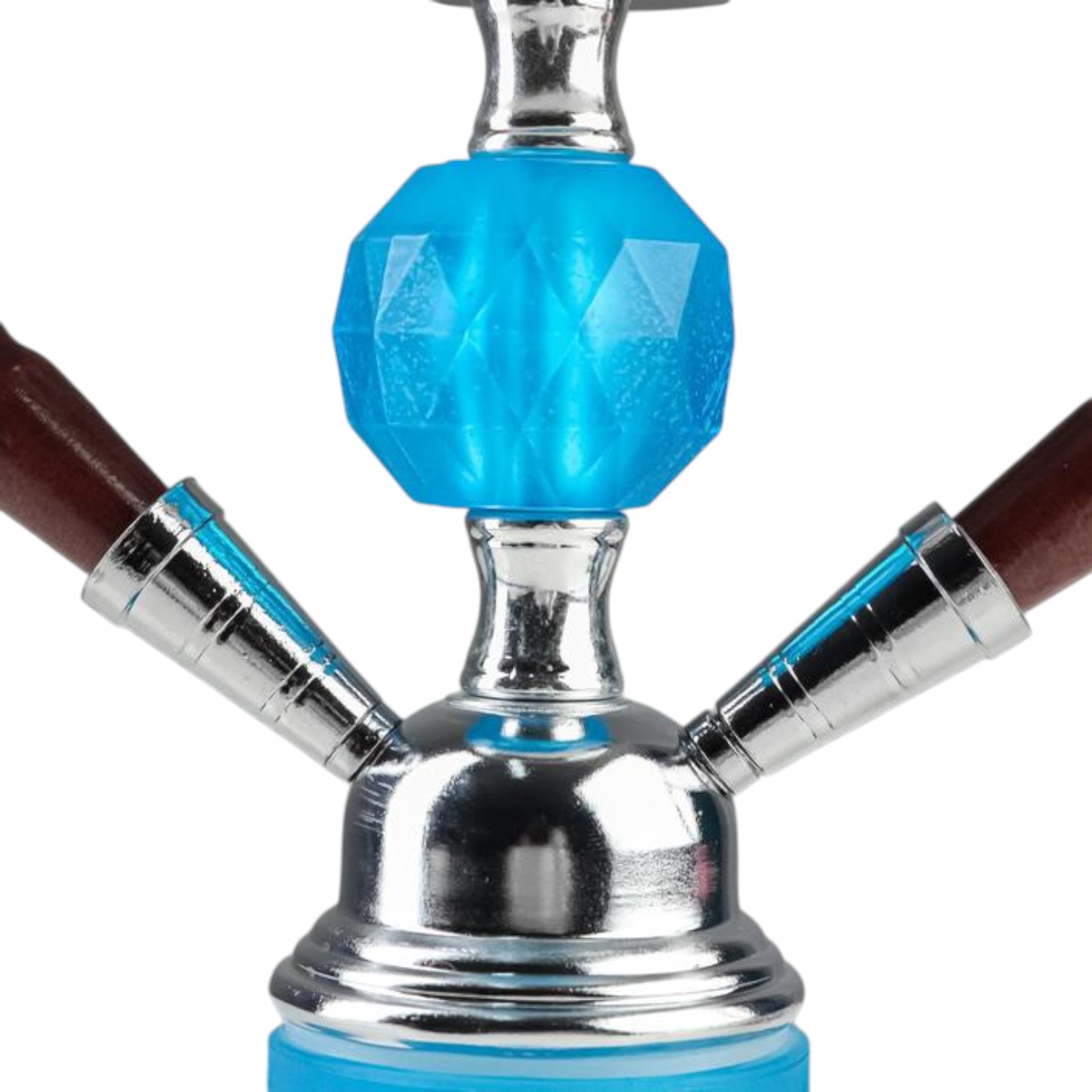 Элегантный компактный кальян, выполненный в современном стиле с акцентом на яркие детали и сбалансированную функциональность. Прозрачная голубая колба из плотного стекла обеспечивает стабильную фильтрацию дыма, а металлическая шахта с декоративной вставкой придаёт конструкции прочность и визуальную выразительность.